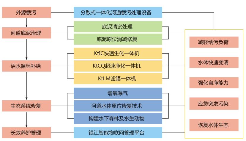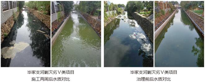 通過截污納管、底泥改良、增氧曝氣、生態治理,逐步恢復河道的水體生態,消除黑臭,2018年達到 Ⅳ類水標準。