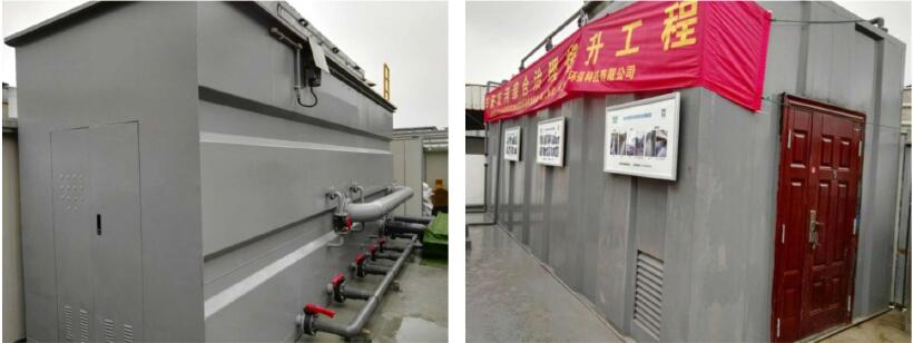 因生活管網建設不完善,湖州吳興區葉家蕩小區雨水排放口持續混入大量生活污水,增加河道的污染負荷,水質渾濁發黑,附近水域受到嚴重污染。2017年5月,通過引進我司4套KtIC快速生化一體機處理后,出水達到一級A標準。