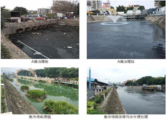 在各級政府的支持和鼓勵下,經過我們不懈的努力,地鐵A涌的水質狀況有了質的飛越。水面由原來的垃圾成堆到現在的干凈清爽,水質由原來的黑臭水體到現在的地表Ⅳ類水,由原來人人嫌棄的臭涌到現在人人夸贊的景觀河,水質徹底改善。