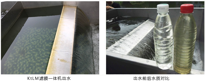 該項目采用我司開發的2500噸/天的KtLM濾膜一體機,該設備為專利產品,集成高效物化技術加活性炭濾膜技術,具有提升水體透明度,除磷脫氮,能夠在2-3天內使河道快速變清,快速去除懸浮物SS、COD、總磷及部分氨氮,是當下消劣利器。該設備具有處理水量大,設備占地小,解決大流量雨污合流排污口入河問題。