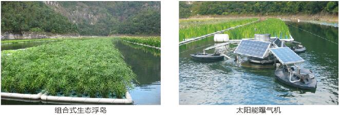 水源地保護、湖泊水體綜合治理采用組合生態浮島(專利)加太陽能曝氣(專利)技術。