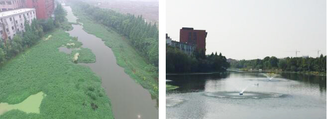 在適當的位置向水體進行人工充氧,同時建立整個水體的有效循環,避免水體出現缺氧或厭氧區,使整個水體自凈過程始終處于好氧狀態。因此,可以采用人工曝氣的方式向水中充氧,加速水體復氧過程,提高水體中好氧微生物的活力,以改善水質。