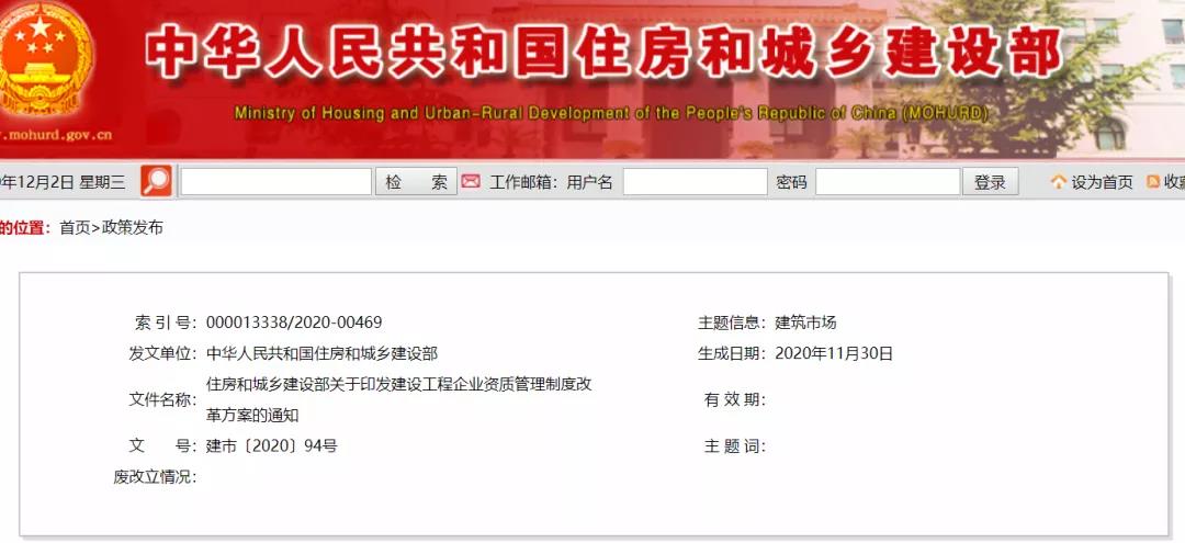 資質大改革!今天住建部網站正式發(fā)布新資質改革方案