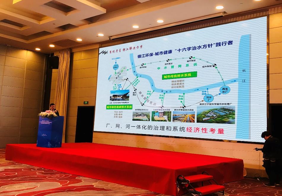 會議第二天上午,銀江環保的技術總監仝武剛發表主題為《構建綠色低碳排水系統——城市水環境提升新方案》的報告,深得與會專家們的認可。結合行業背景,該報告重點闡述了銀江環保構建城市綠色低碳排水系統的理念以及在污水資源化領域的核心產品、技術方案和成功案例。銀江環保的五大核心產品:KtCQ水體凈化器、KtLM強化脫氮除磷裝備、KtIC一體化污水處理裝備、KtYY醫療污水處理裝備和銀江智慧水務系統,在行業內得到廣泛的應用。針對行業痛點,我們不斷升級優化產品,提高市場的契合度,給客戶們提供最具價值的服務。